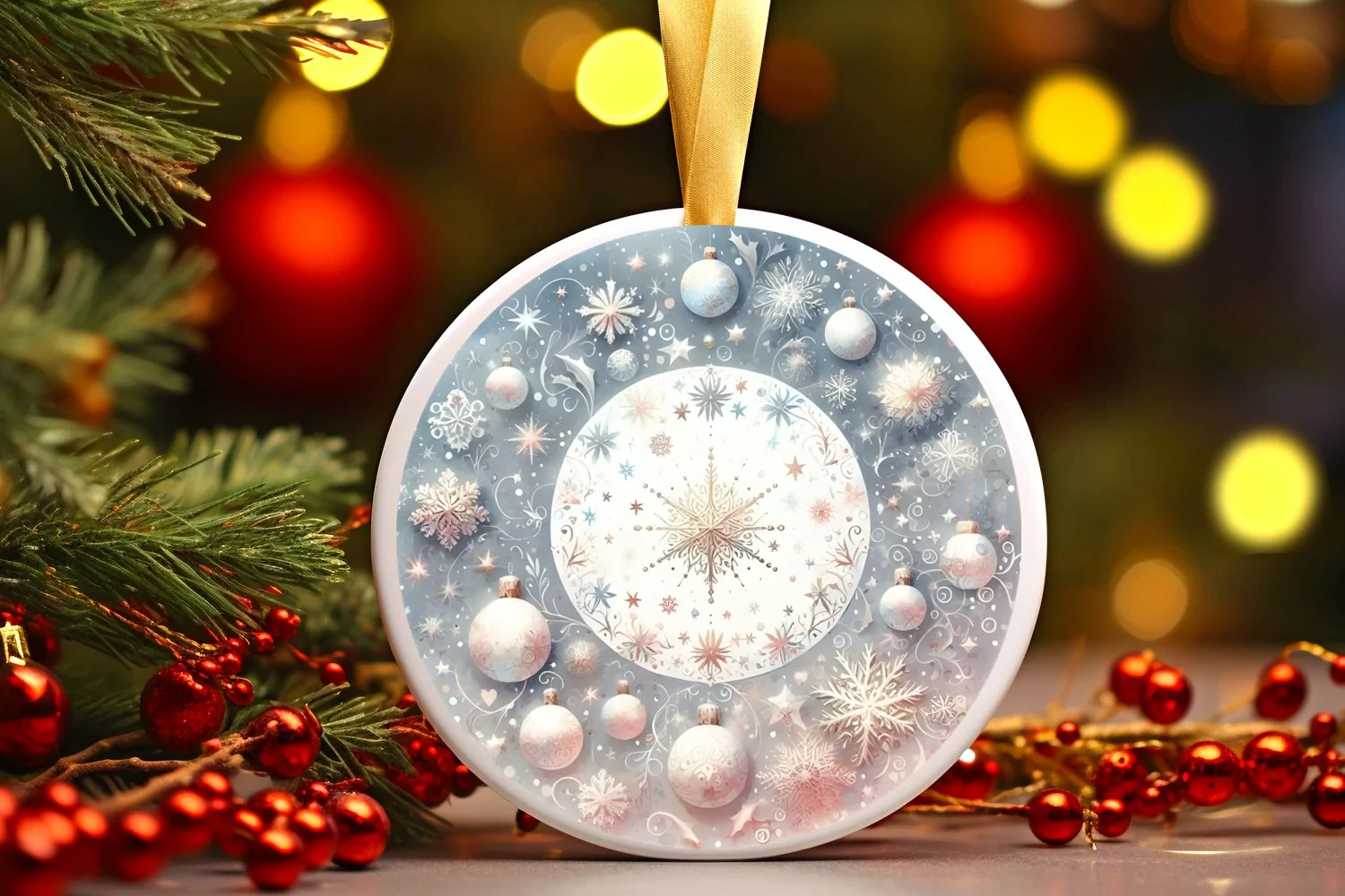 Snowflakes Type Treatment Round Ornament Sublimation PNG example image 1