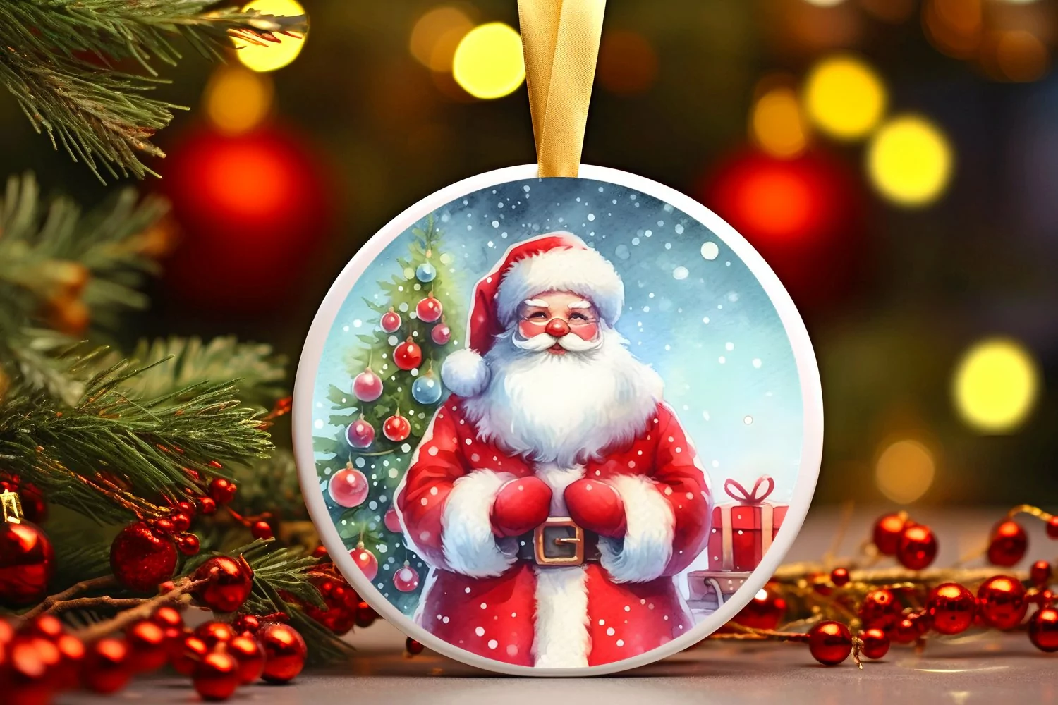 Watercolor Ornament Round Sticker Christmas Winter Vibrant Png Santa Sublimation