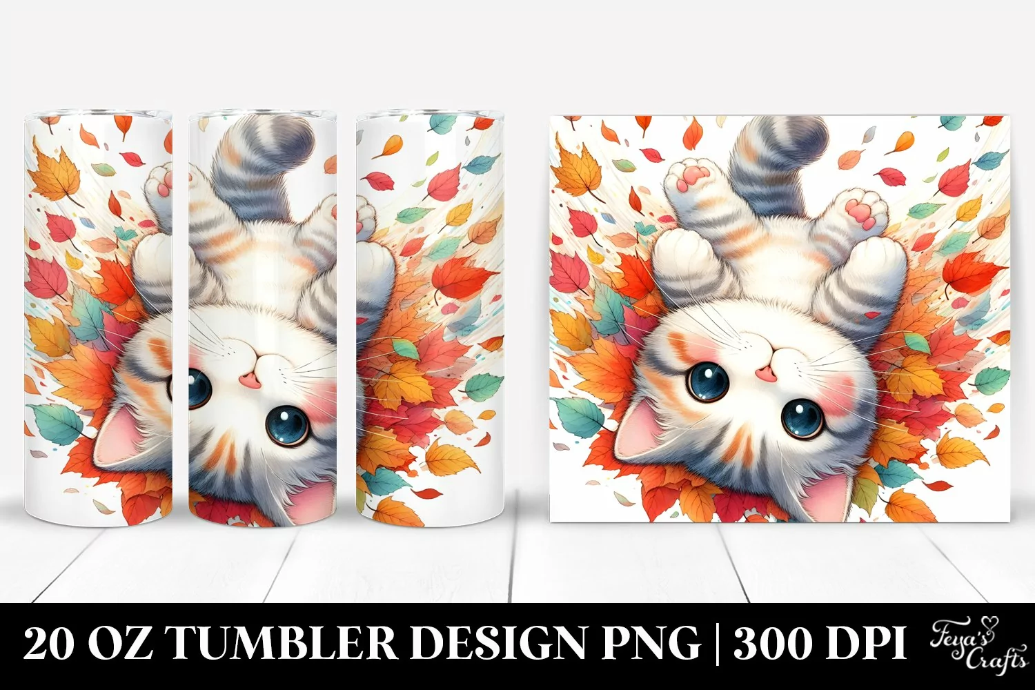 Watercolor Cute Colorful Clipart Png Cat Sublimation Tumbler Tumbling Autumnleaves