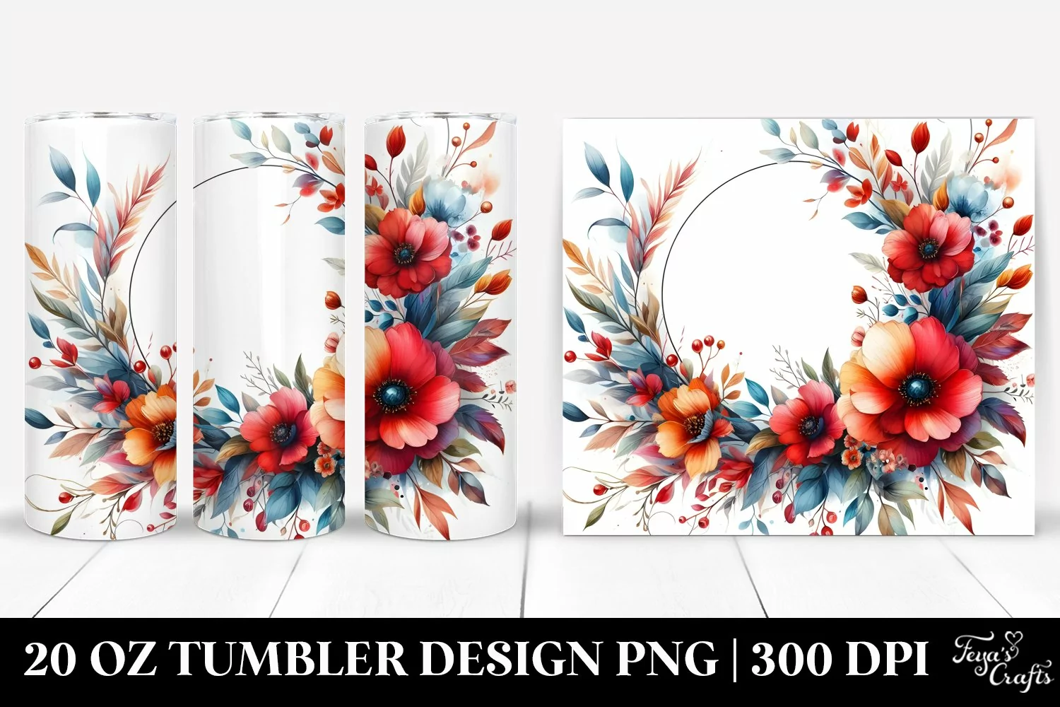 Colorful Floral Abstract Clipart Frame Png Sublimation Tumbler Redflowers Whitebackground