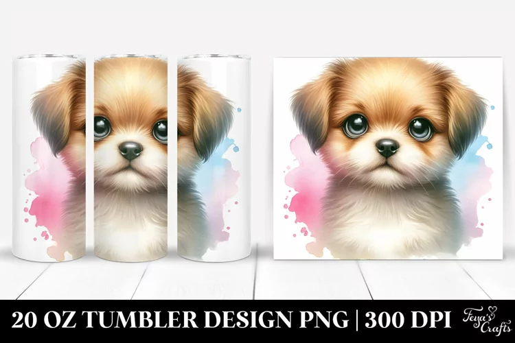 Watercolor Cute Baby Dog Tumbler Design | 20 oz Tumbler example image 1