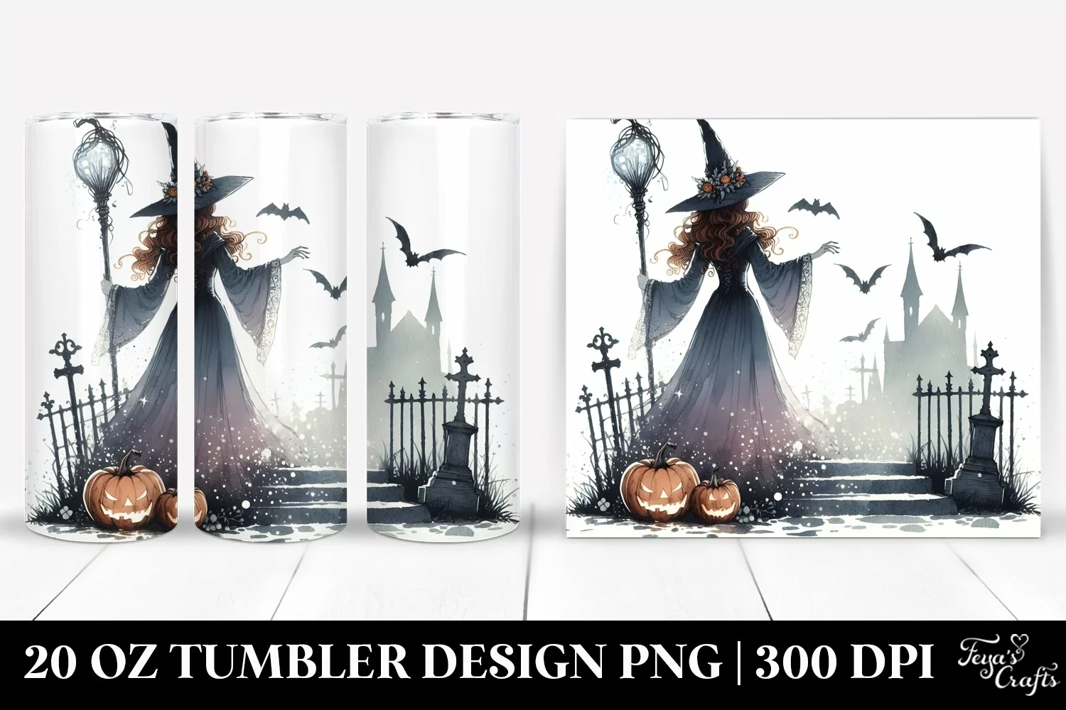 Vintage Simple Haloween Clipart Png Sublimation Tumbler Sorceress Whitebackground Washedwatercollor