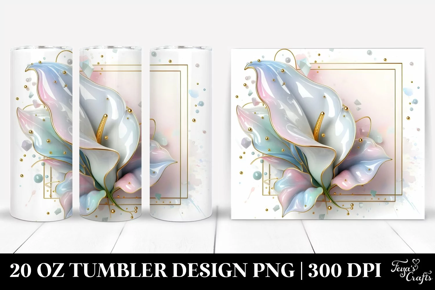 3d Shiny Abstract Clipart Png Glass Metallic Sublimation Tumbler Callalily
