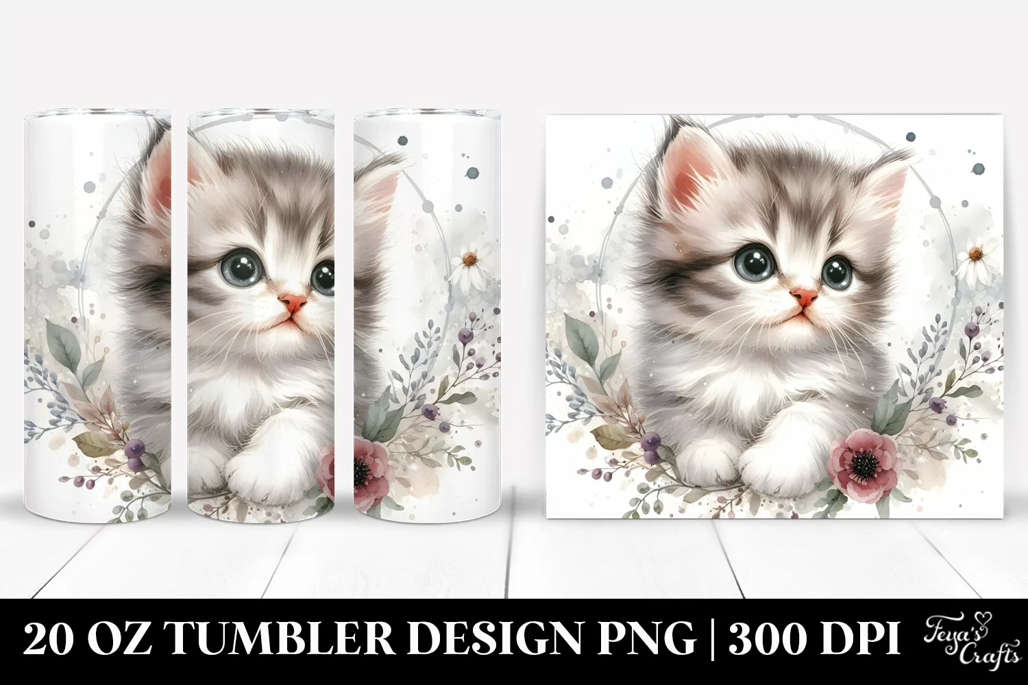 Baby Cat Watercolor Image | 20 oz Tumbler example image 1