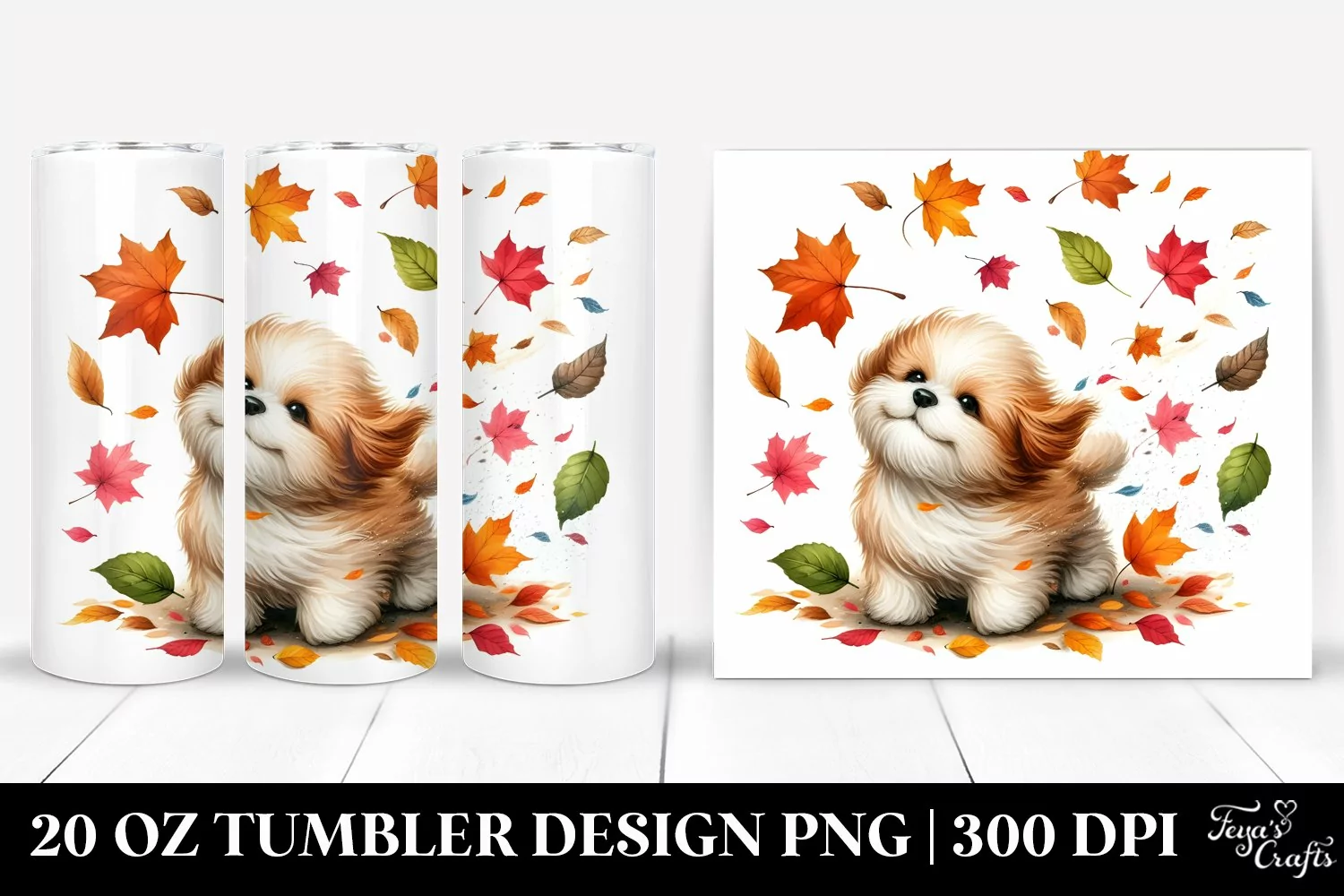tumbling,Cute Dog Autumn Leaves | 20 oz Tumbler example image 1