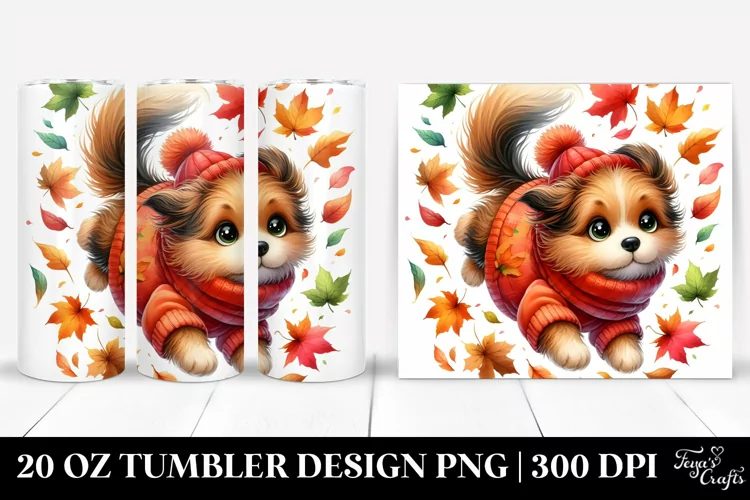 Clipart Png Wind Sublimation Tumbler Whitebackground Autumnleaves Cutedog Colorfulwatercolor