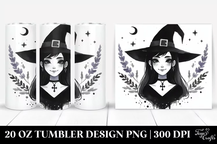 Smiling Gothic Witch Art | 20 oz Tumbler example image 1