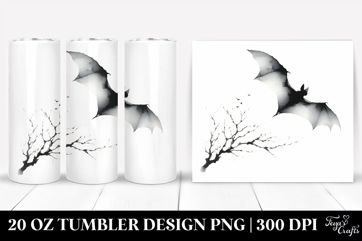 Watercolor Simple Clipart Bat Png White Sublimation Tumbler