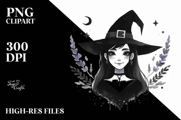 Smiling Gothic Witch Art | Tshirt|Tumbler|Mug|Clipart example image 1