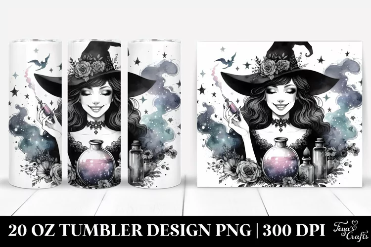 Gothic Clipart Png Sublimation Tumbler Whitebackground Centered Magicpotion Washedwatercolor Smilingwitch