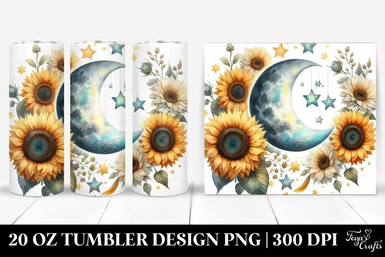 Moon and Sunflowers Design | 20 oz Tumbler example image 1