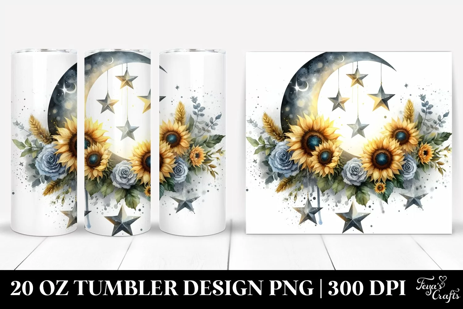 Moon and Sunflowers Design | 20 oz Tumbler example image 1