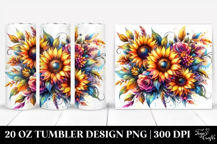 Watercolor Drawing Clipart Vibrant Png Sublimation Tumbler Whitebackground Sunflowers