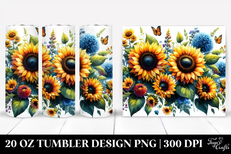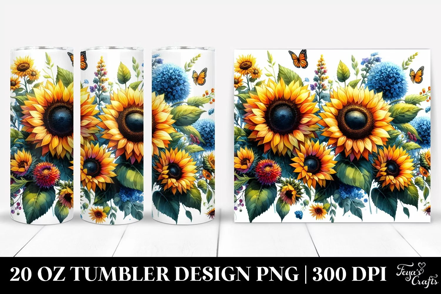 Watercolor Drawing Clipart Vibrant Png Sublimation Tumbler Whitebackground Sunflowers