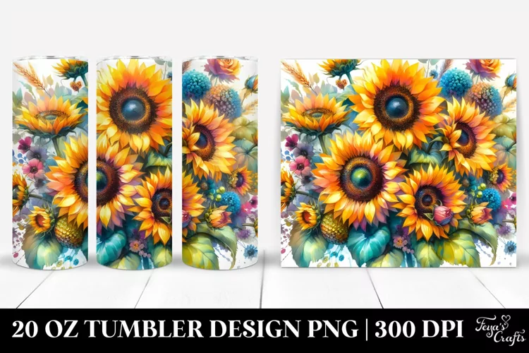 Watercolor Drawing Clipart Vibrant Png Sublimation Tumbler Whitebackground Sunflowers