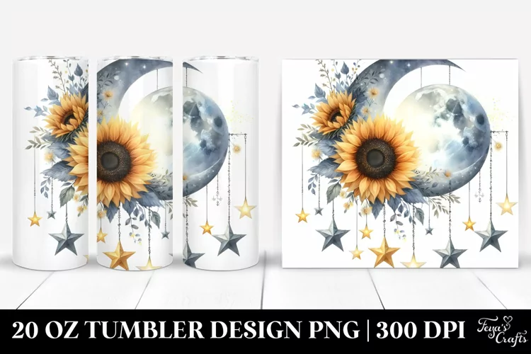 Clipart Png Washed Sublimation Tumbler Watercollor Halfmoon Sunflowers Handingstars