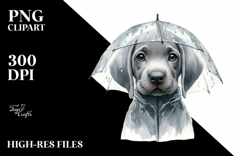 Expressive Baby Raincoat Watercolor Weimaraner PNG example image 1