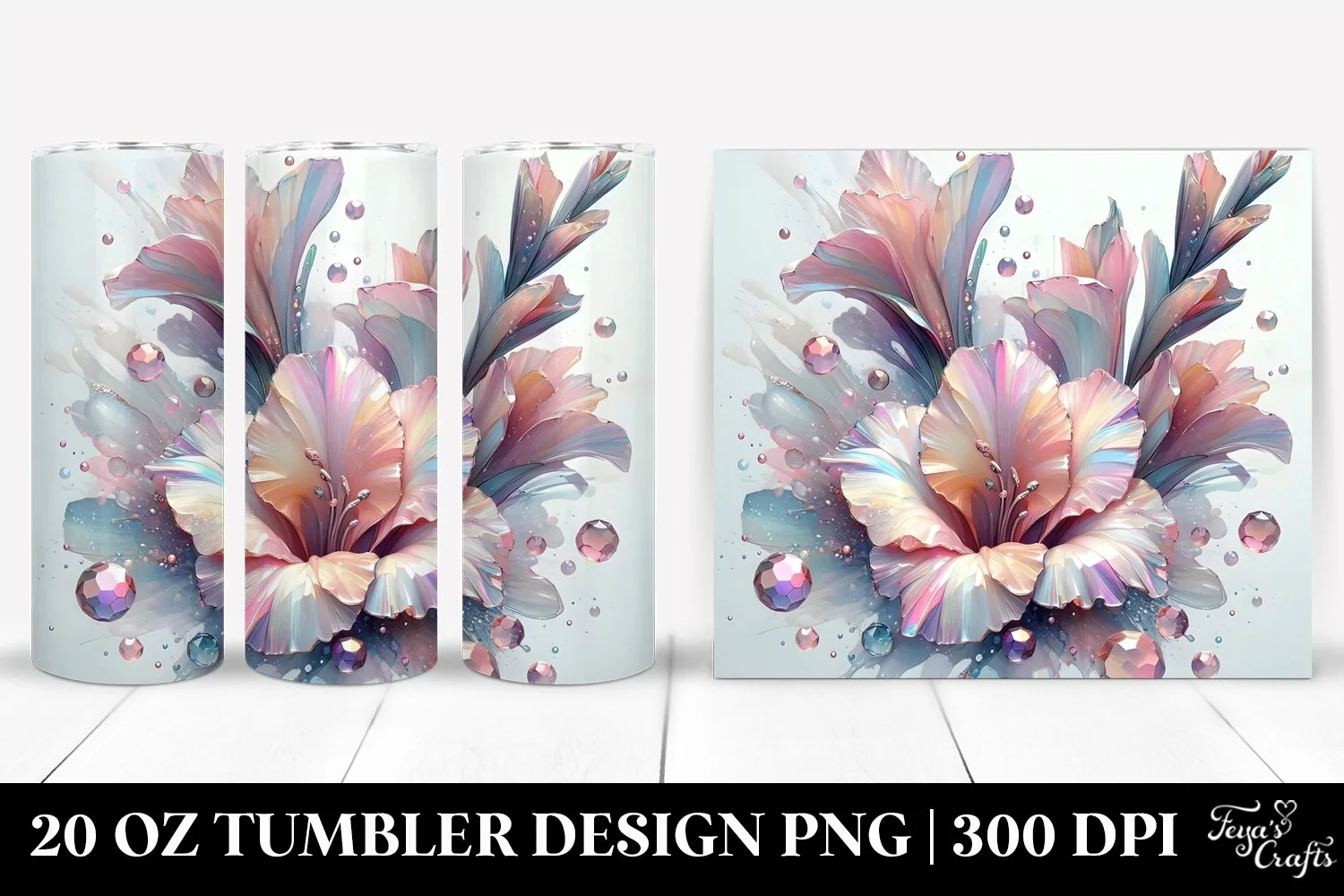 Watercolor Shiny Abstract Clipart Png Pastel Glass Sublimation Tumbler Gladiolus