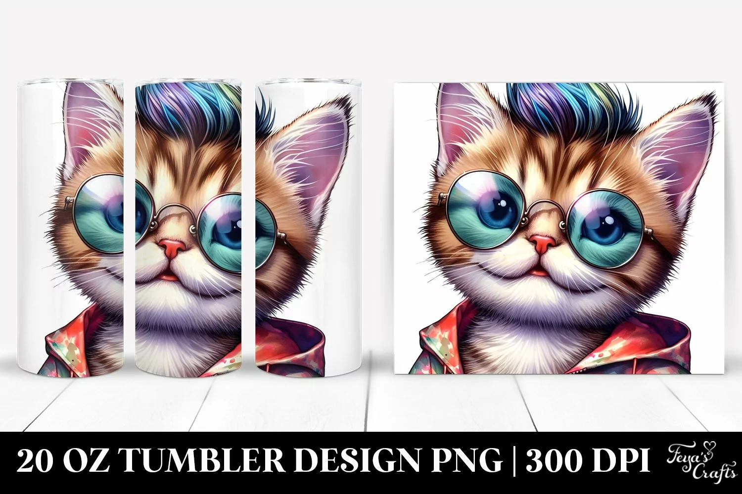 Watercolor Drawing Clipart Vibrant Png Sublimation Tumbler Jeffkoons Coolhaircut Babycat