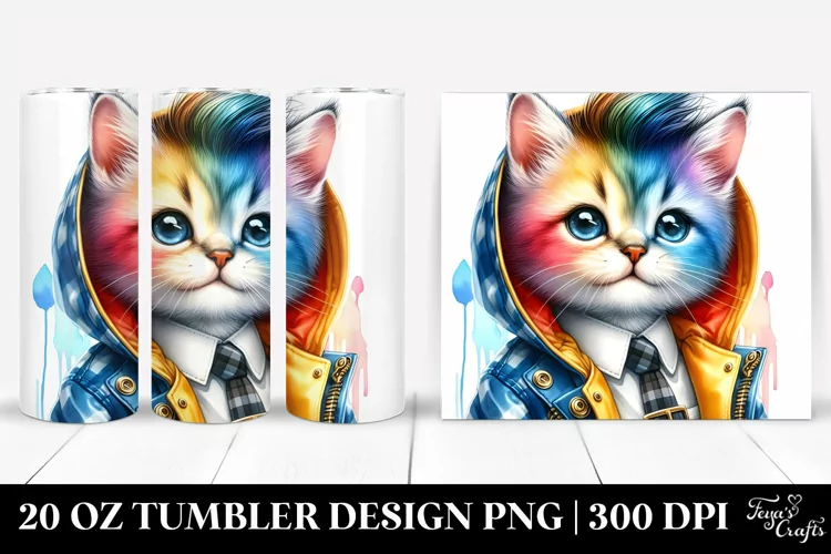 Watercolor Drawing Clipart Vibrant Png Sublimation Tumbler Jeffkoons Coolhaircut Babycat