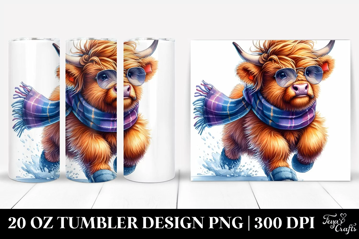 Watercolor Baby Winter Drawing Clipart Vibrant Png Sublimation Tumbler Highlandcow