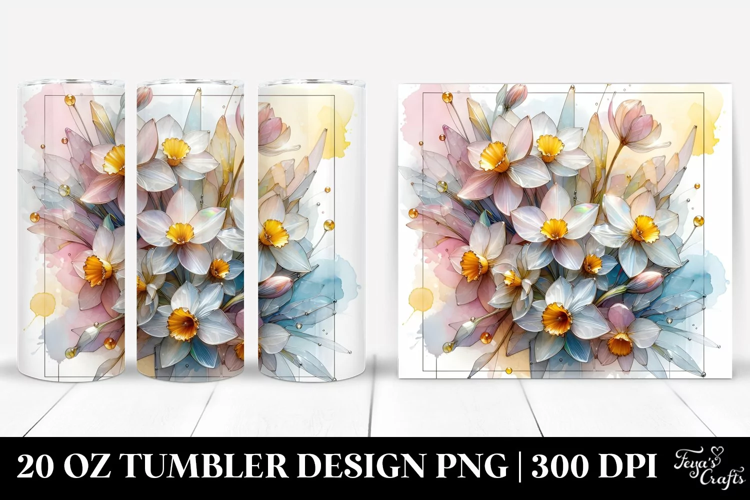 Clipart Png Pastel Metallic Sublimation Tumbler Narcissus Watercolorsplash Glass-like