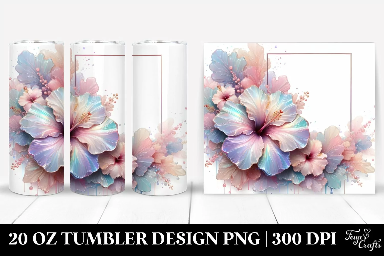Clipart Hibiscus Png Pastel Metallic Sublimation Tumbler Watercolorsplash Glass-like