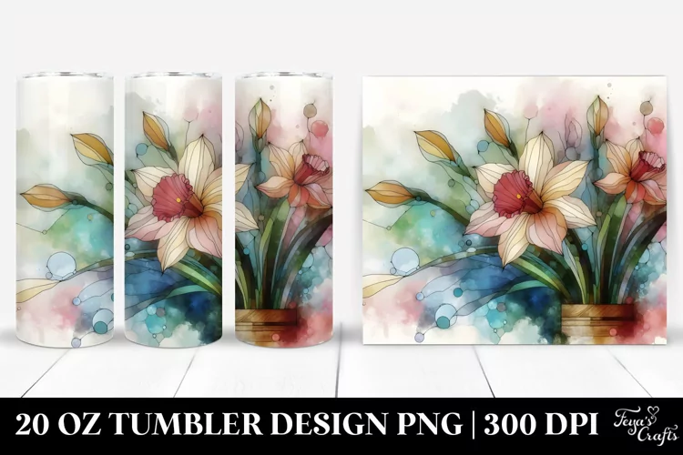 Watercolor Wooden Clipart Png Pastel Glass Sublimation Tumbler Narcissus Stainedglass