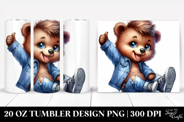 Watercolor Cute Model Clipart Vibrant Png Sublimation Tumbler Coolhaircut Babybear
