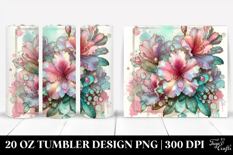 Floral Shiny Abstract Clipart Png Pastel Glass Rhododendron Sublimation Tumbler