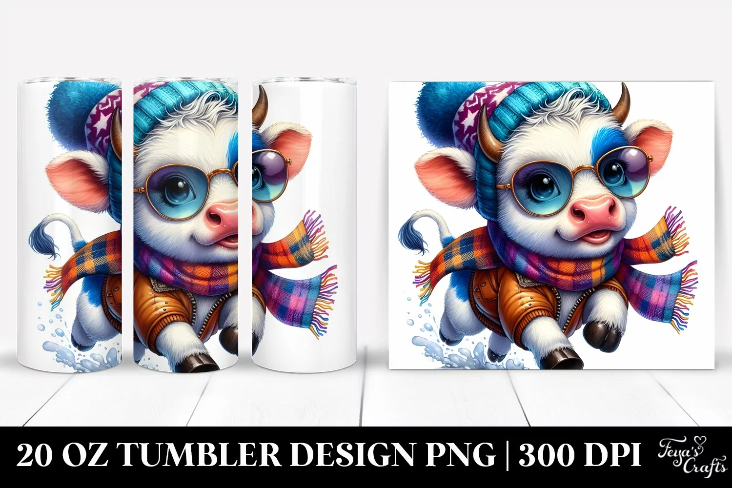 Watercolor Cute Winter Clipart Png Sublimation Tumbler Babycow Coolhaircut Vibrantdrawing