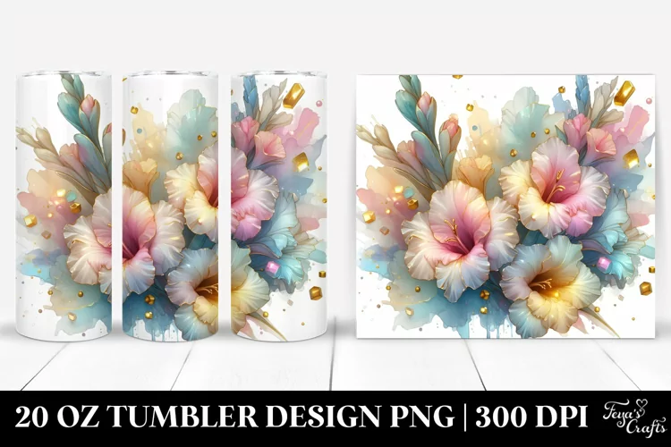 Shiny Golden Abstract Clipart Png Pastel Glass Sublimation Tumbler Gladiolus