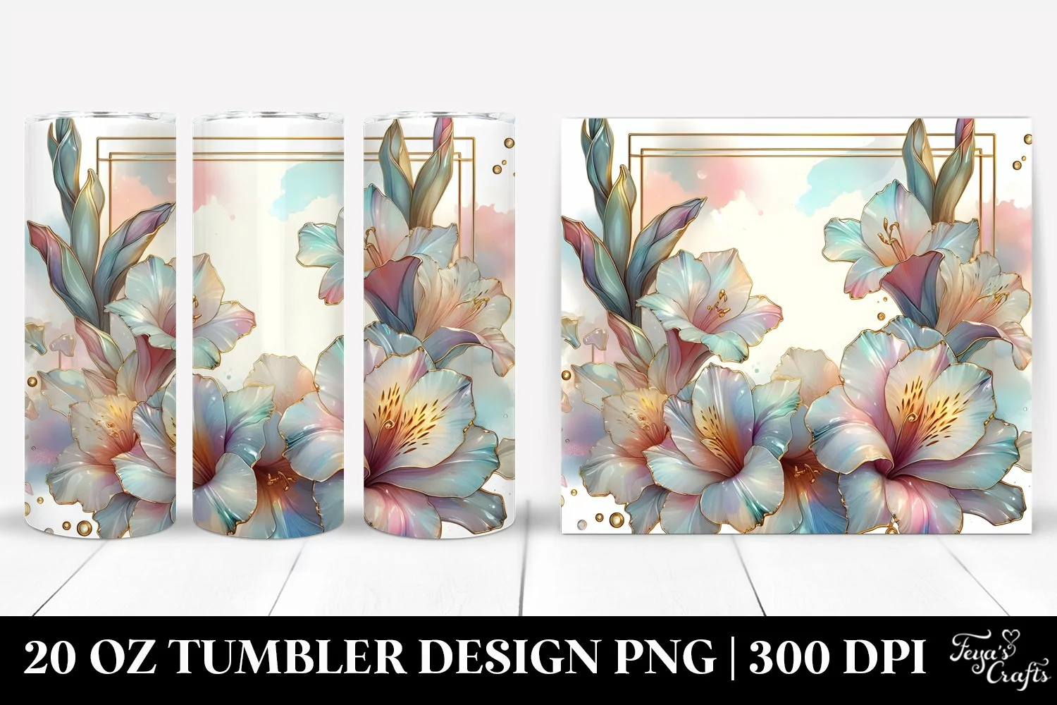 Shiny Golden Abstract Clipart Png Pastel Glass Sublimation Tumbler Gladiolus