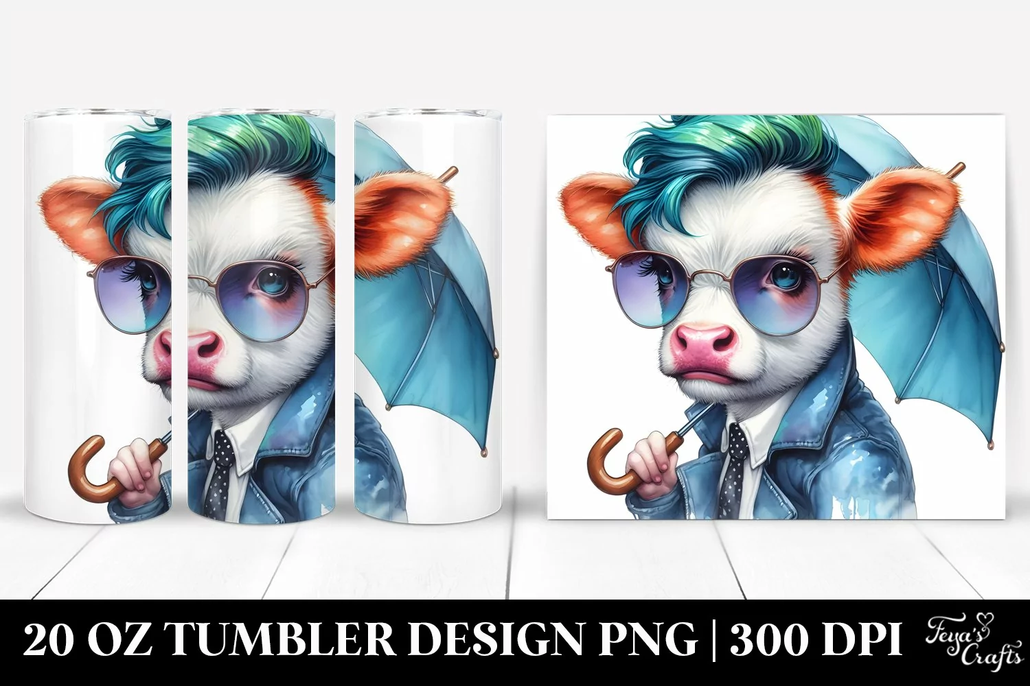 Watercolor Cute Clipart Vibrant Png Sublimation Tumbler Babycow Coolhaircut Expressiveface