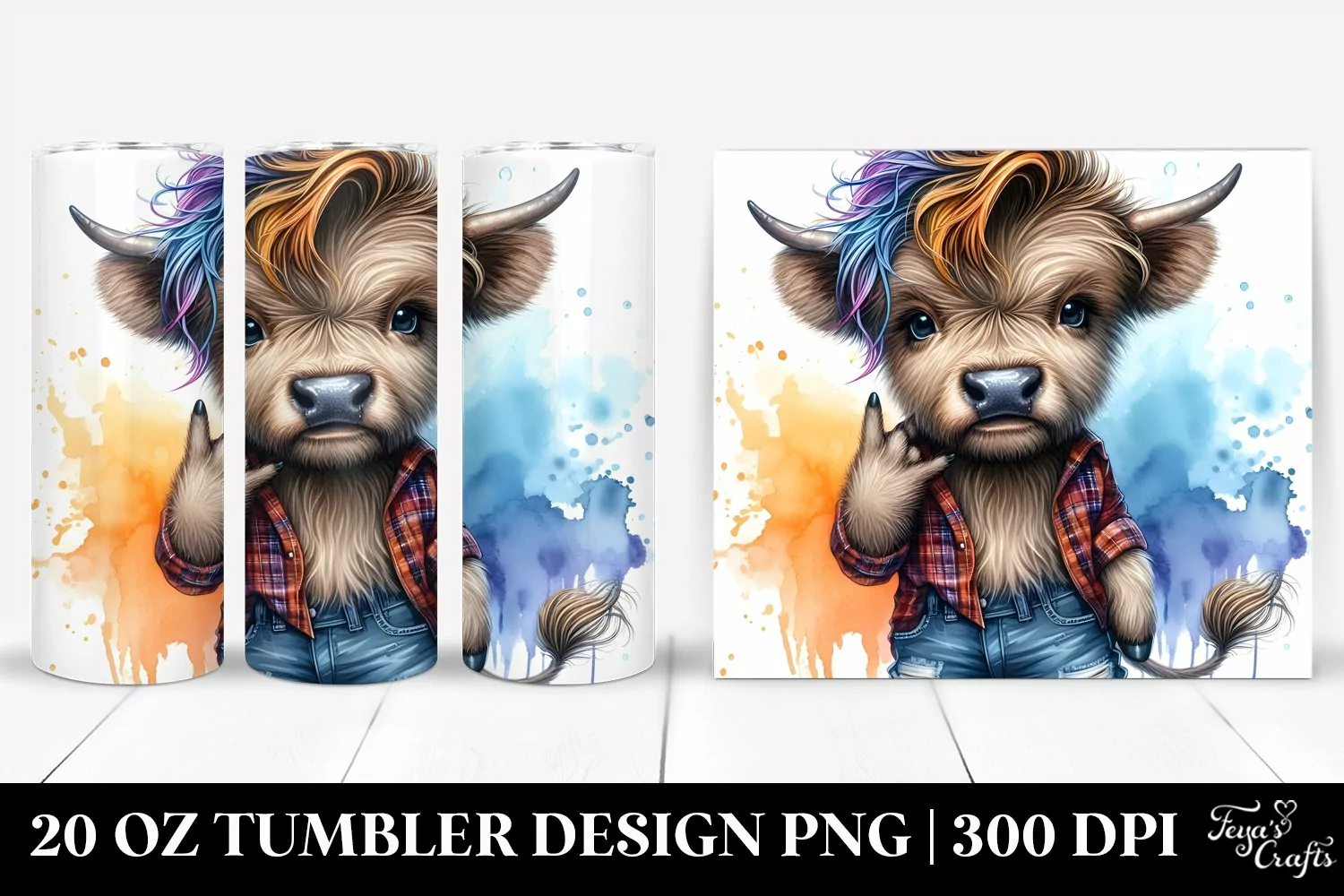 Similar Design Products to Funny Baby Highland Cow, Vibrant Drawing | 20 oz Tumbler