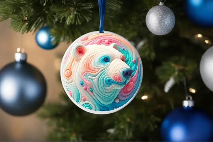 Polar Bear Round Ornament Sublimation PNG