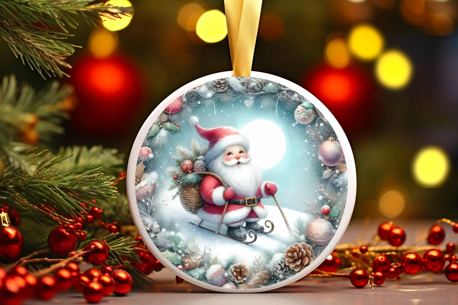 Santa Centered Winter Round Ornament Sublimation PNG example image 1