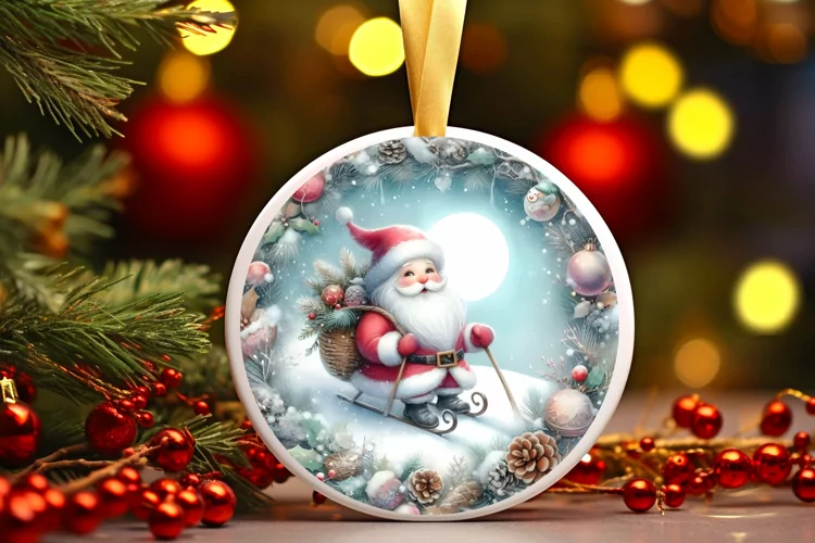 Ornament Round Sticker Christmas Winter Png Santa Sublimation Centered Touchingthecanvasedges