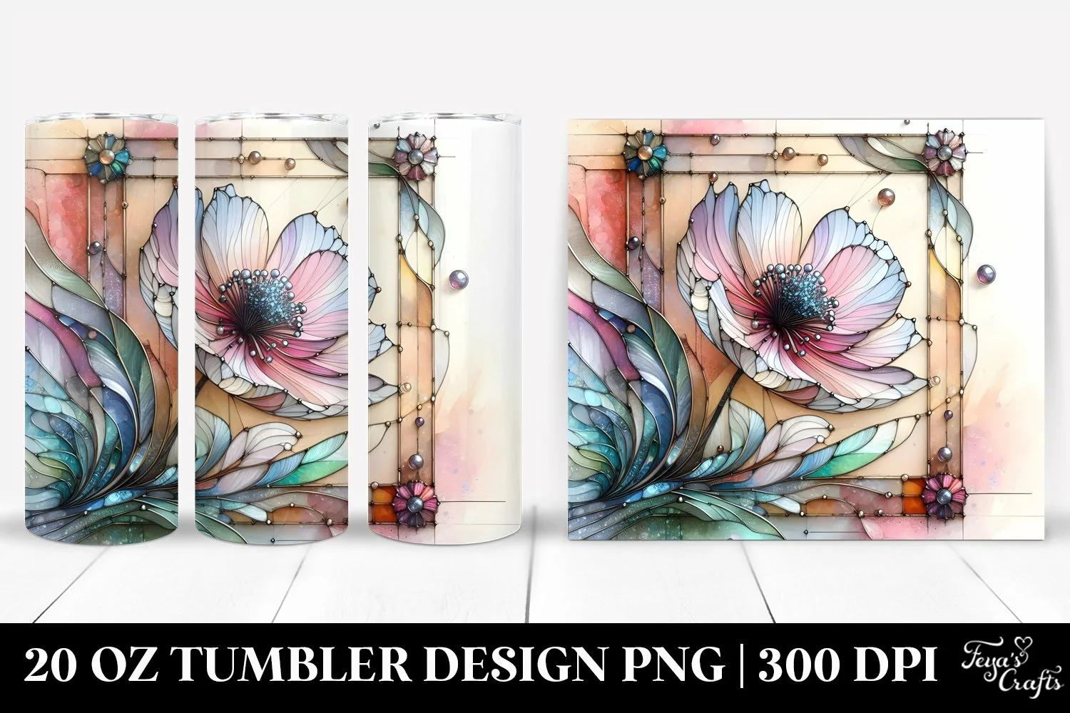 Wooden Abstract Clipart Anemone Png Pastel Sublimation Tumbler Metalic Stainedglass