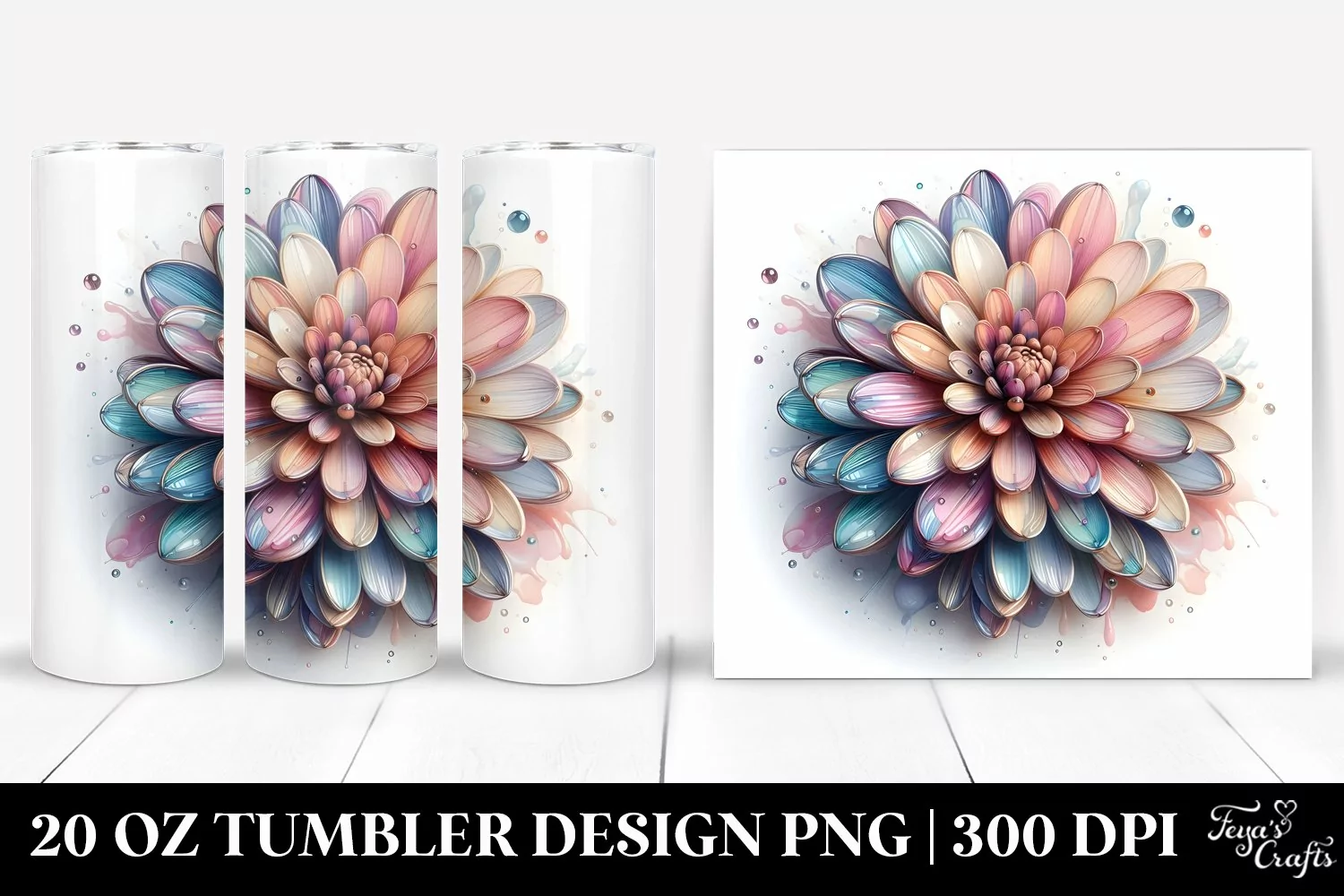 Watercolor Splash Clipart Dahlia Png Glass Metallic Sublimation Tumbler