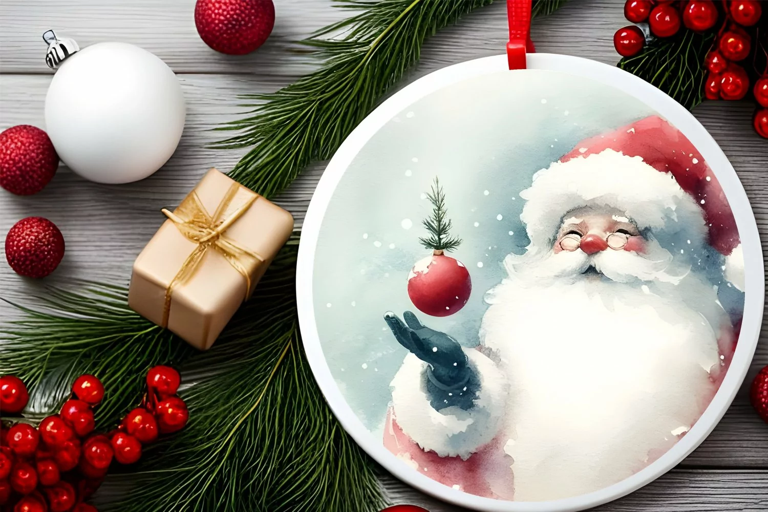 Watercolor Ornament Round Sticker Christmas Png Santa Colorfull Sublimation