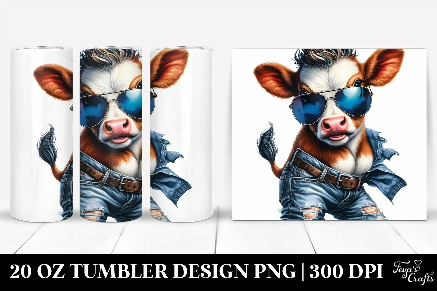 Vibrant Baby Cow Drawing Tumbler Clipart | 20 oz Tumbler
