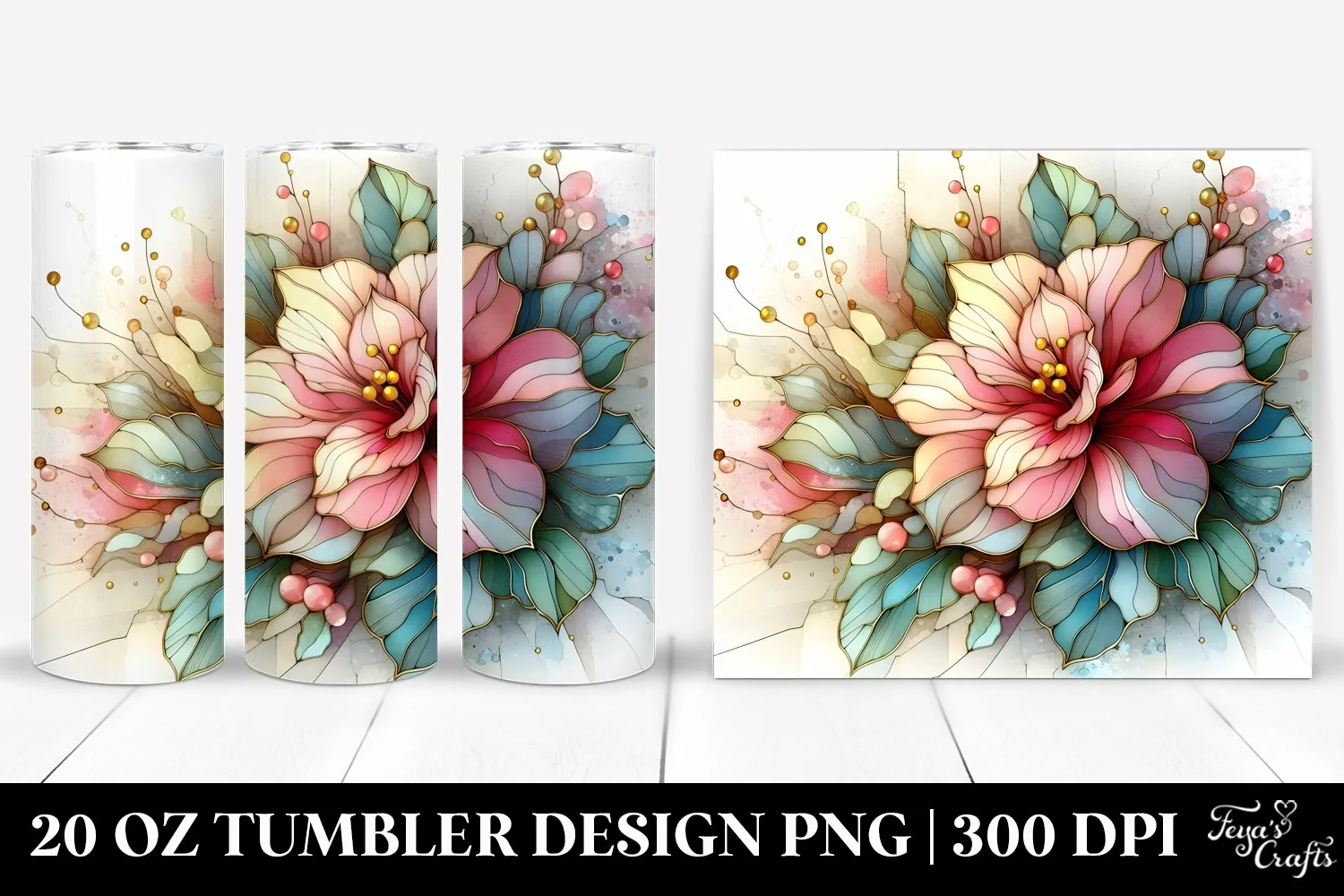 Similar Design Products to Vibrant Zinnia Stained Tumbler Clipart | 20 oz Tumbler