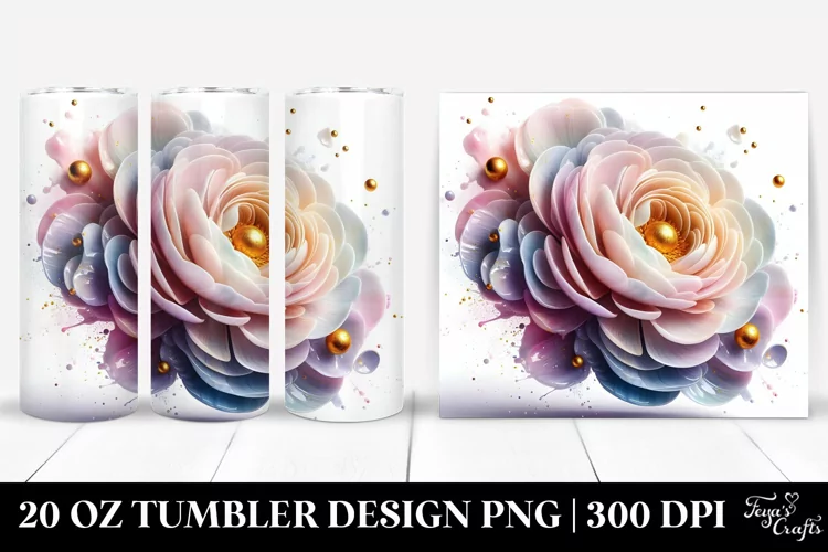 Watercolor Glossy Golden Clipart Ranunculus Png Small Sublimation Tumbler Insertions