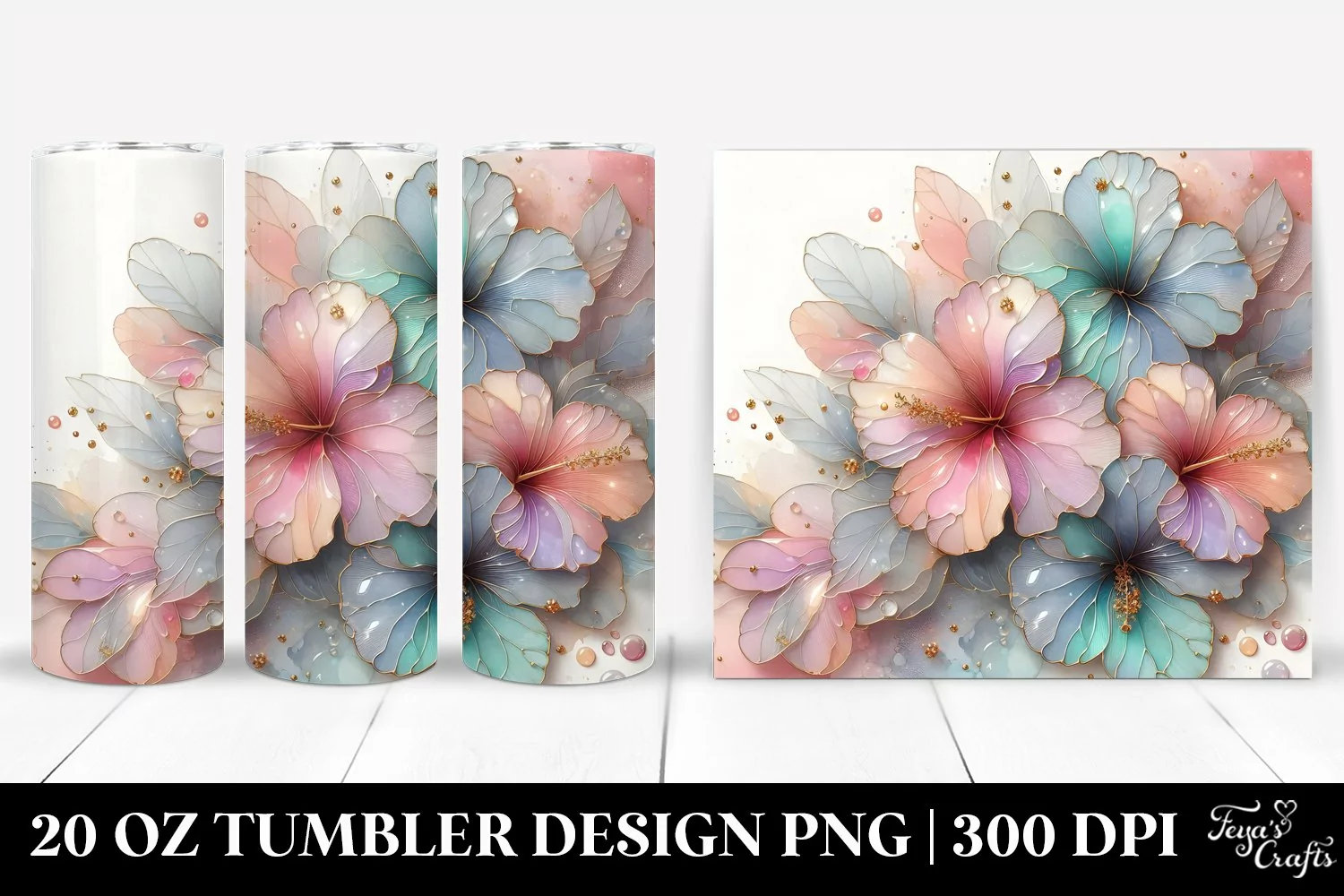 Watercolor Shiny Abstract Clipart Hibiscus Png Pastel Sublimation Tumbler Glassmaterial