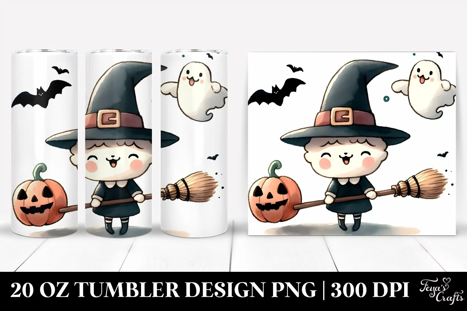Funny Watercolor Simple Haloween Clipart Png Sublimation Tumbler Broomstick