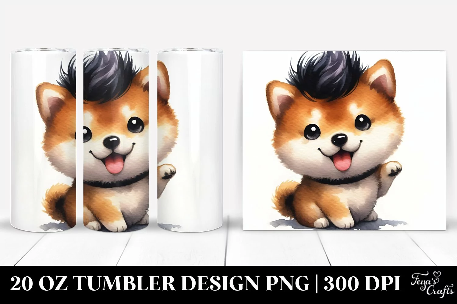 Watercolor Cute Clipart Png Expressive Haircut Sublimation Tumbler Enthusiastic Shibainu