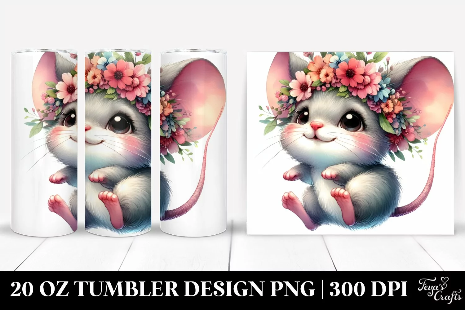 Vibrant Baby Mouse with Floral Wreath, Transparent 20 Oz example image 1