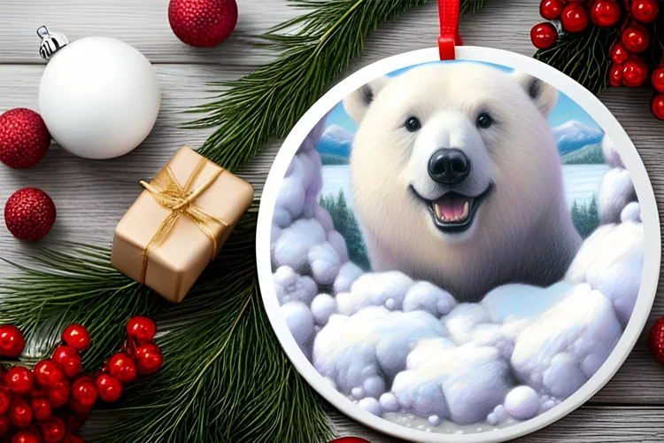 Polar Bear in Snow Wall Round Ornament Sublimation PNG