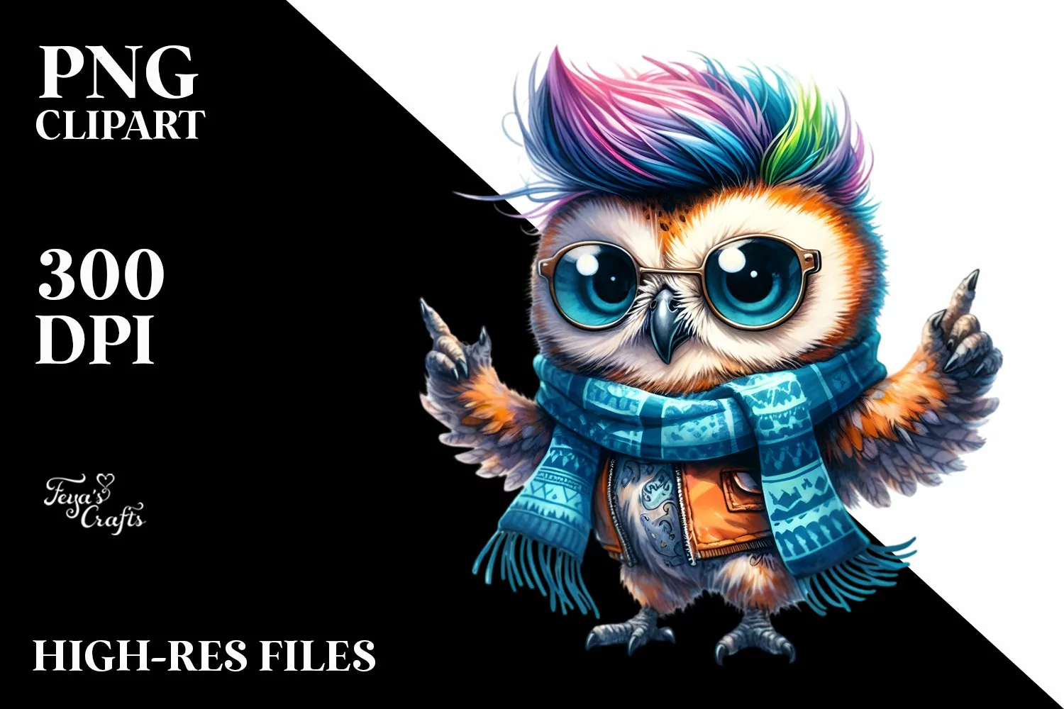Dancing Baby Owl in Winter Outfit, Transparent PNG example image 1